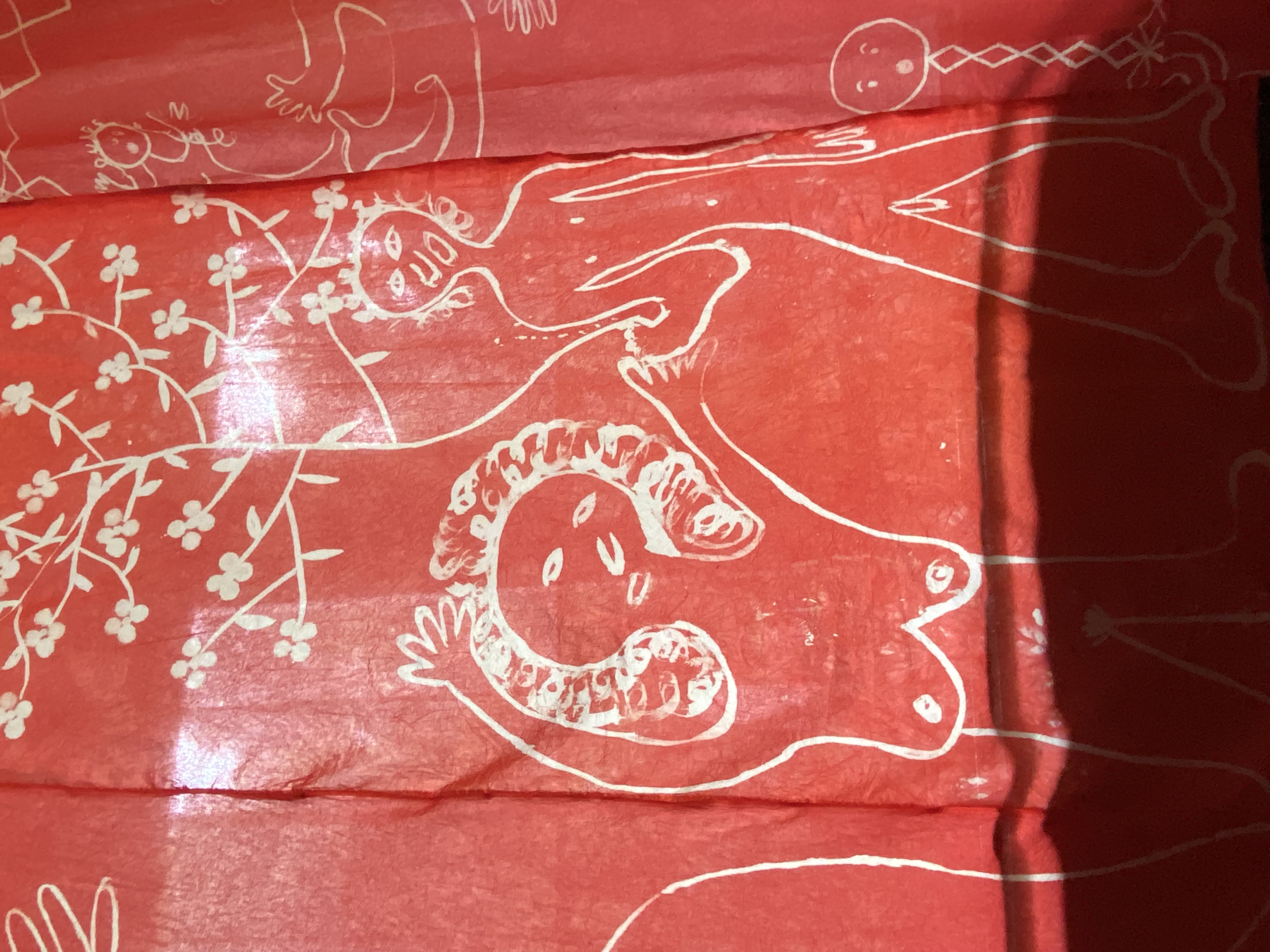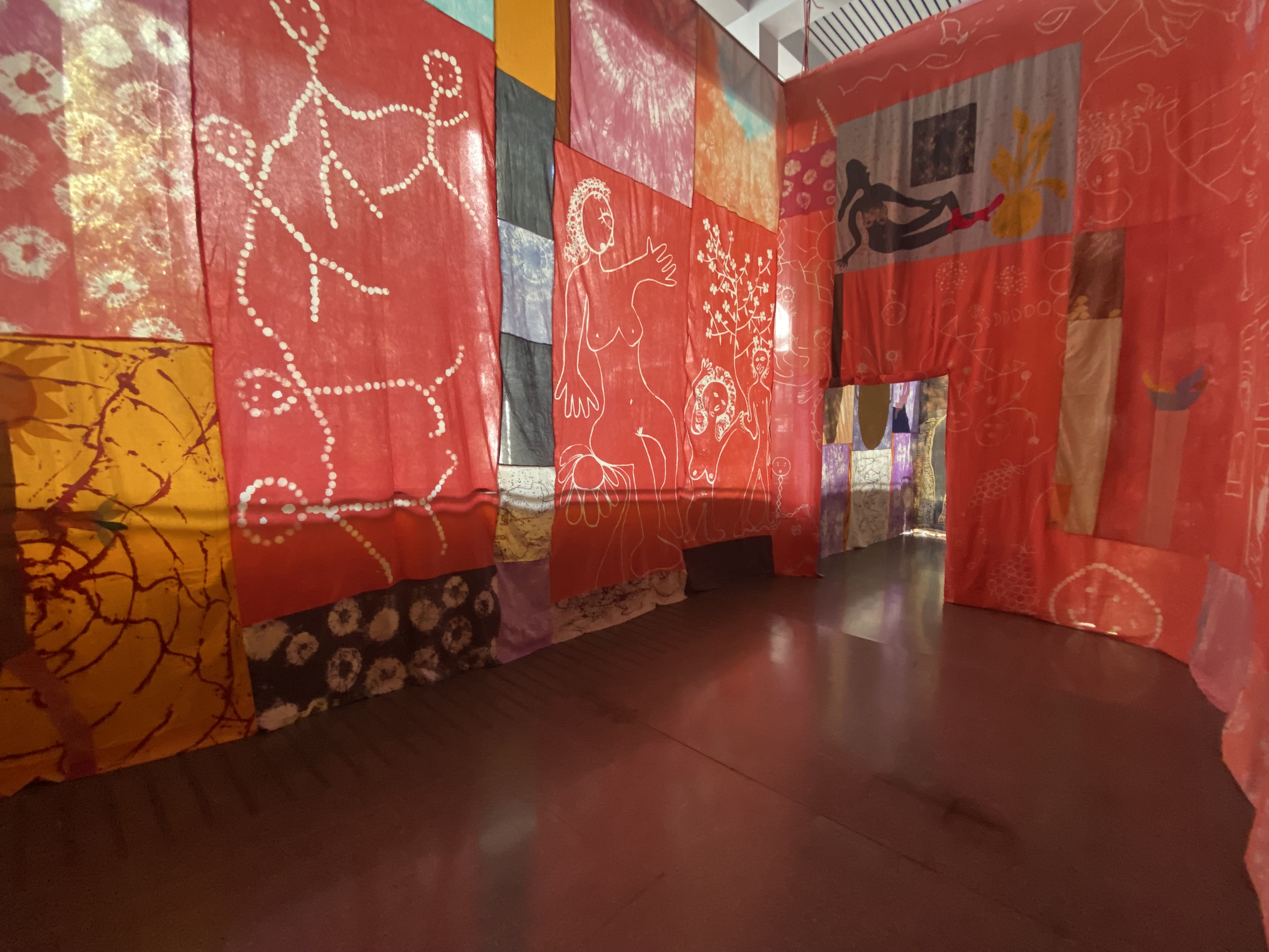 El segundo, el cuarto rojo, refiere al cuerpo físico: un espacio completamente rojo en la que desaparece el patchwork casi en su totalidad para traducir las imágenes en dibujos. En su interior, el público no sólo ve un cambio de tono con respecto al primer espacio, sino que también el color baña los cuerpos visitantes, entrando en una especie de órgano-espacio.